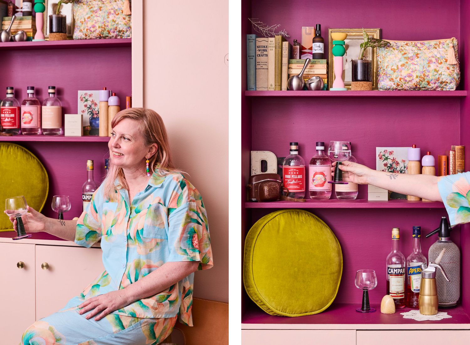 Colour is all about memory and emotion for me. It’s the red and white leotards I wore as a young gymnast. It’s the teal silk curtains and striped velvet dining chairs in my grandma’s early 80s home. It’s the yellow of wattle and the pure joy it sparks, and the jacaranda tree I climbed as a child. It’s the pink of sunsets that linger just long enough to make you stop and breathe. It’s red, my mum’s favourite colour, woven through so many memories. Every shade I surround myself with holds a story, and together they create a sense of home that is both deeply personal and endlessly inspiring. In my home currently, colour is inspired by my memories and my happy place, the local beach, with its shifting aquas and greens, golden tones, and rosy-lilac skies at dusk. My favourite time to walk or swim. All layered with nods to the 1970s bones of the house. And a lot of blush pink… which is a neutral, right?!