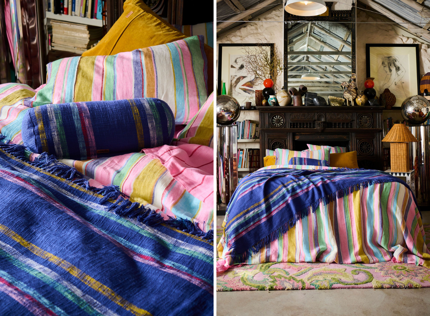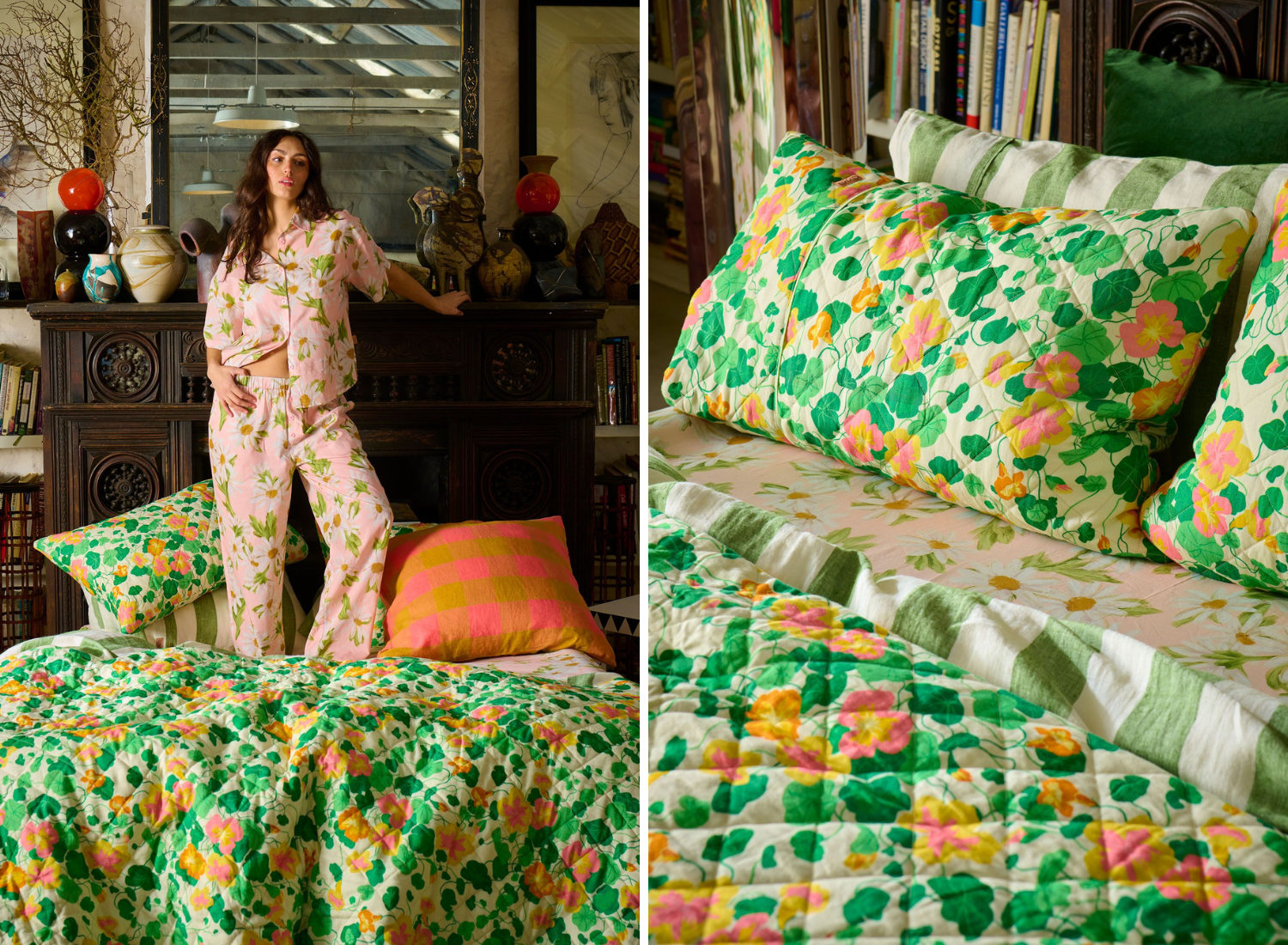 Layer on Sweet Daisy or Tarragon Stripe quilt covers for that “oh yes, this feels like me” moment. Add Lavender or Tangier Days Stripe pillowcases to mix prints without worrying about being matchy-matchy. Feeling extra cosy? The Nasturtium quilted linen bedspread is your instant “ahhhh” moment at the end of the day.