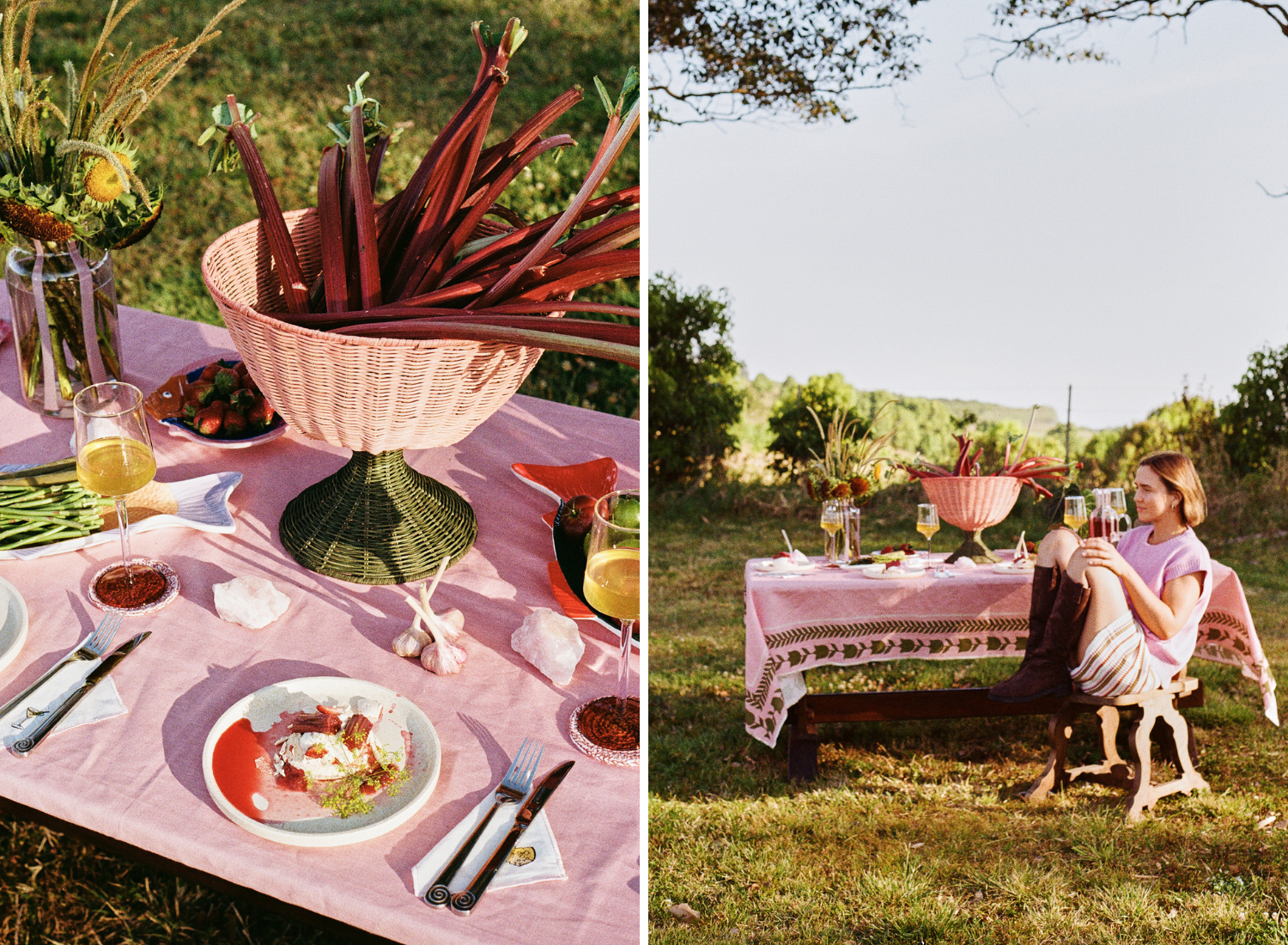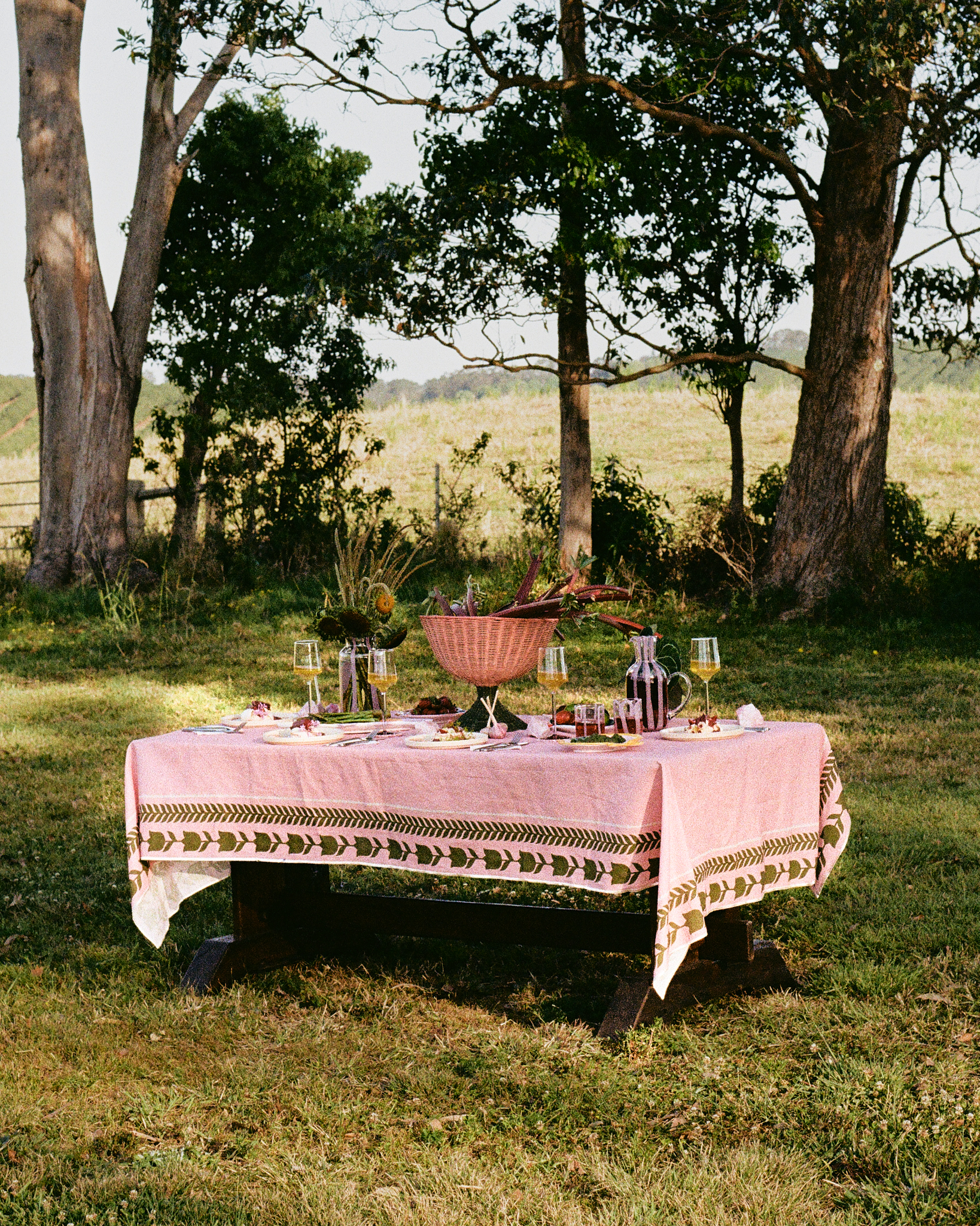 This collaboration captures everything we love about spring entertaining, colour, connection, and a touch of luxe. The best tables aren’t about perfection; they’re about storytelling. An embroidered edge, a hand-poured glass, a spill of petals — these are the details that make a setting feel lived-in and loved.