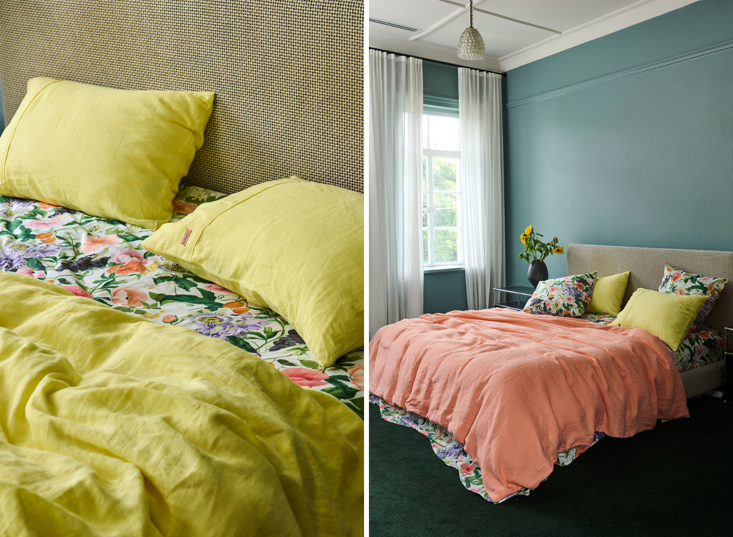 If linen is more your language, the bold beauty of Big Beauty feels instantly elevated when teamed with pillowcases in Coral or Lemon Butter. The trick is to keep it joyful but not overthought—like throwing on your favourite summer dress and sandals.