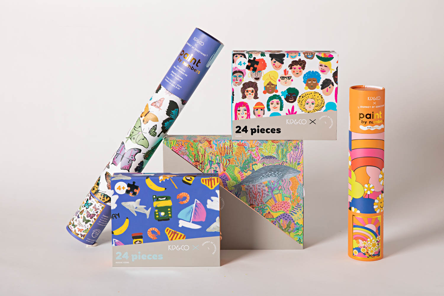 Let your creative juices flow with our latest collab! We've partnered with the masters of artful play at Journey of Something to bring you three puzzles and two paint by numbers artworks featuring some of our iconic Kip&Co prints from the last decade! Designed to relax your mind and beautify your space, this is a great way to disconnect from tech and reconnect with the whole family.