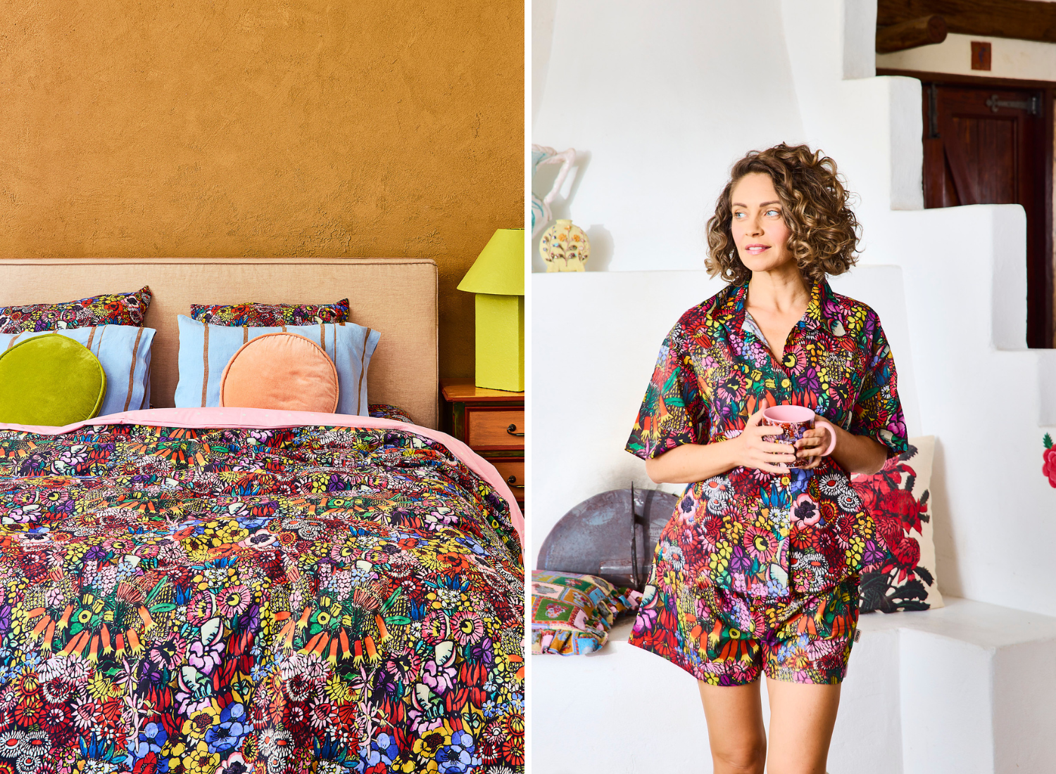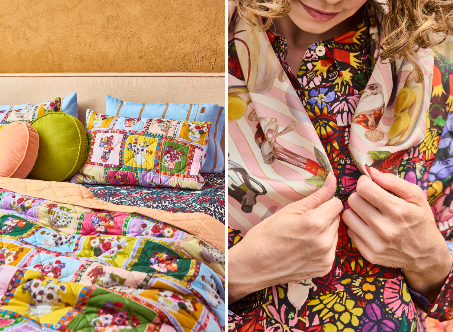 This collection reimagines her archival prints into vibrant, functional pieces for the home and wardrobe - meaning you can live with her art, every single day. We all want our spaces to feel special, personal, layered, and full of meaning.