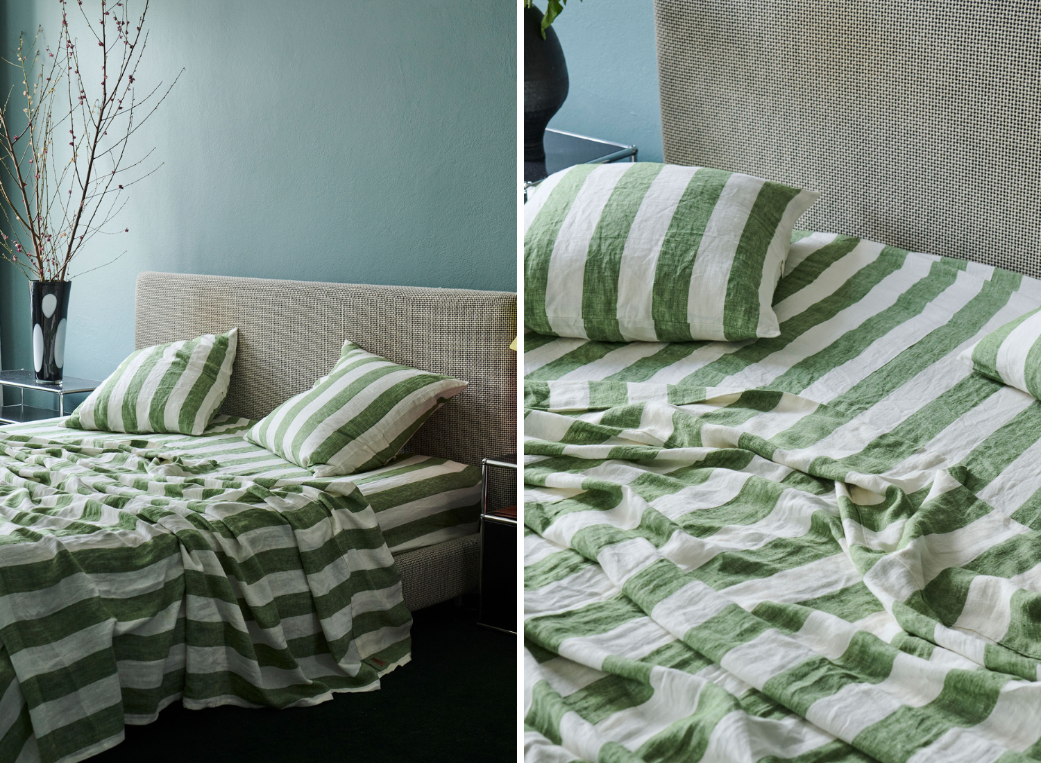 I can’t wait to put Moss Stripe on my bed. I am a stripe girl and this chunky moss green totally stole my heart this season. Pair it with a few of the Velvet Pea Cushions - always a fave.