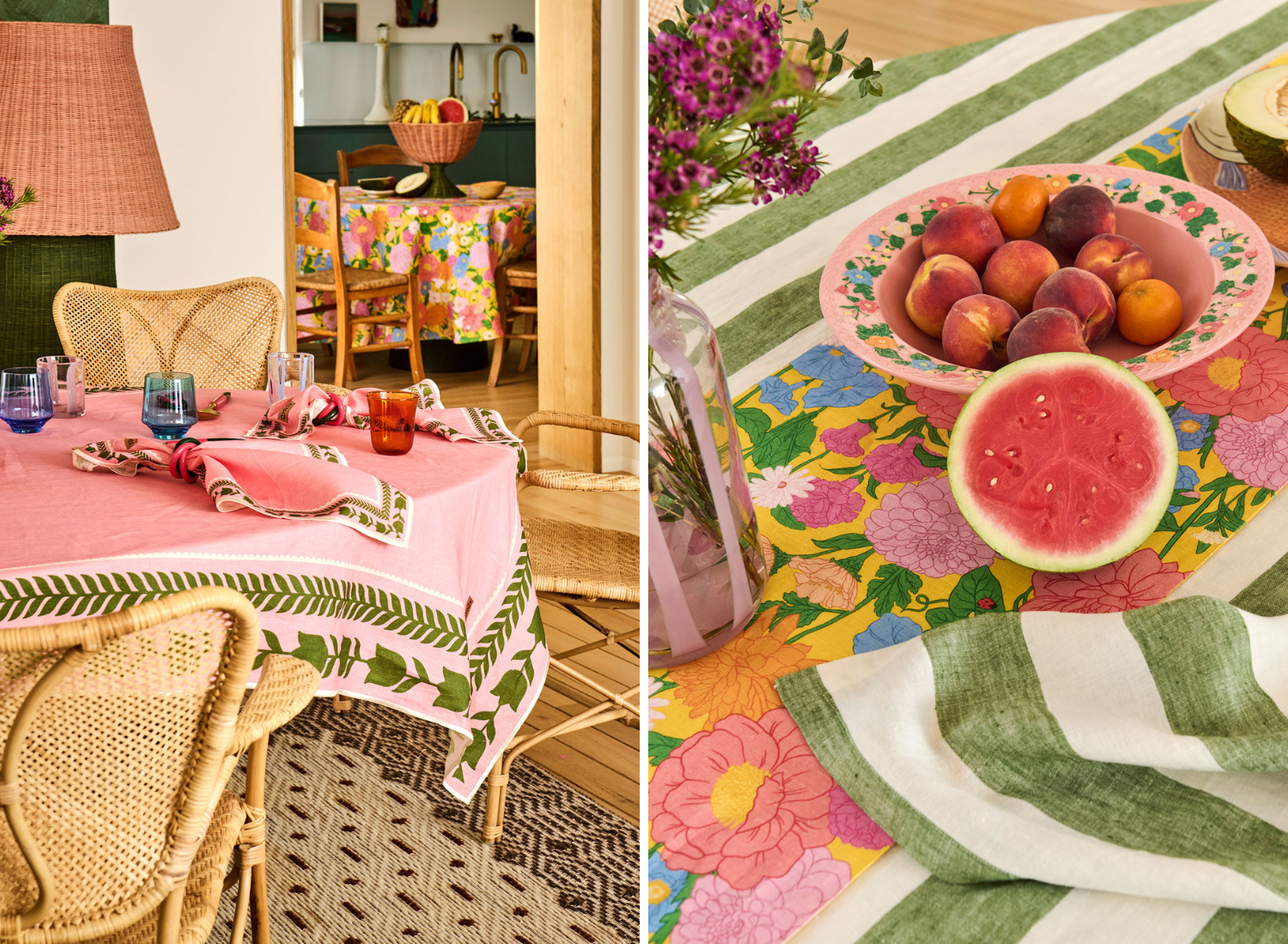 A tablecloth isn’t just fabric—it’s your summer energy in a single swipe. Think Follow The Sun beaming with warmth, Paradise Found bursting with lush colour, or Sweet Tartan bringing picnic-perfect charm. Layer it up with our new table runners to add extra flair. Bonus: our linen-blend fabric is beautifully soft, stain-friendly, and effortless to style (because who wants to stress about spills when the spritz is flowing?).