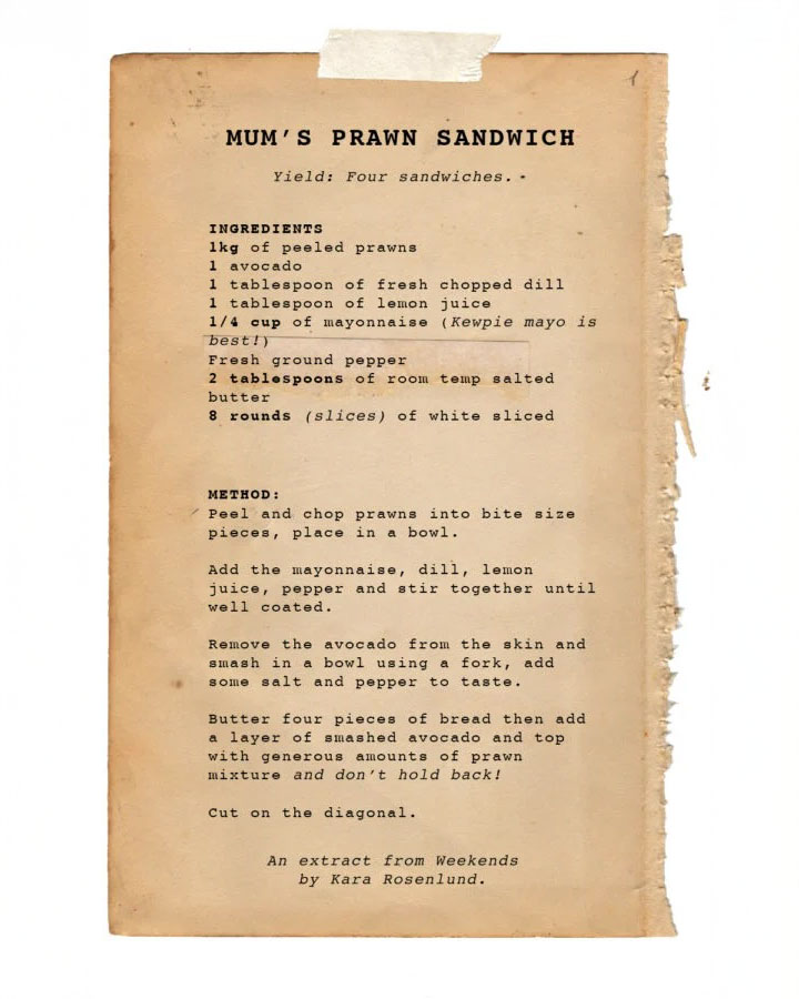 3. Butter four pieces of bread then add a layer of smashed avocado and top with generous amounts of prawn mixture, don’t hold back.