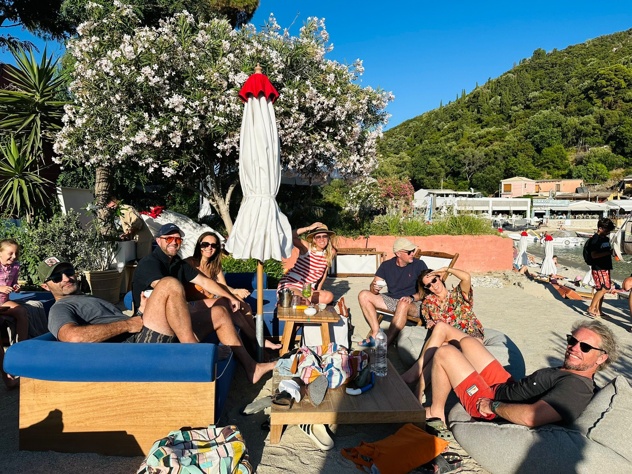 Hands down, Agni Beach. We had one of those all-time life-memory days. Sit on the beach, rent boats and water gear for the kids, watch the super yachts, and enjoy a Hugo spritz in the shade. Simple, perfect, delicious, every bit of it.