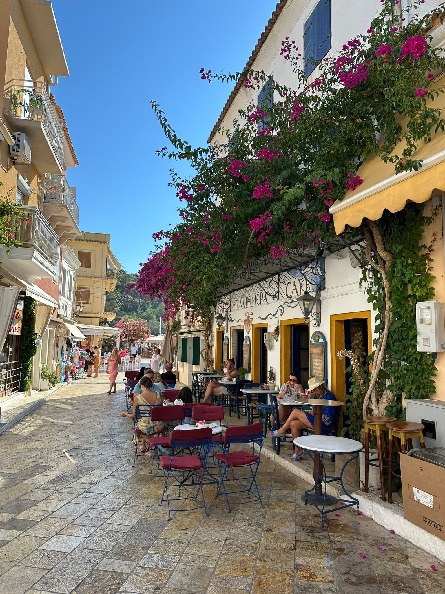 We stayed in Gaios, the main port village, and it was such a great base. Stunning outlooks, fabulous shops and restaurants, and super easy for exploring. From Gaios you can rent boats and skipper yourself over to Antipaxos, highly recommend, or jump on a larger boat with other day trippers and let someone else do the navigating.
