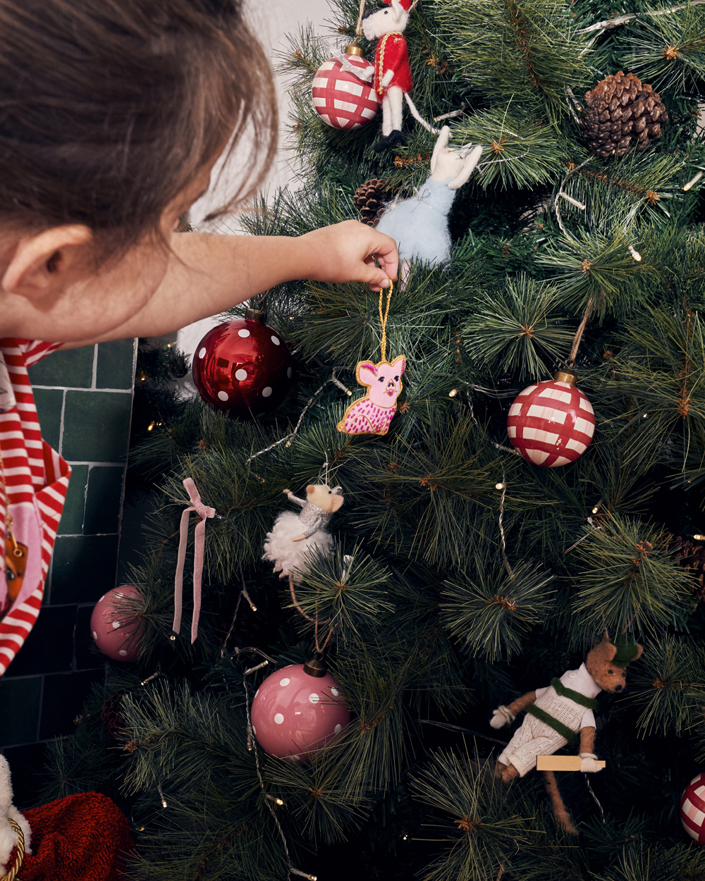 Next, I add the baubles, spaced evenly throughout the tree, and then we finish with all the special keepsake decorations. Every year I buy something little and new to add to our collection. It feels like our tree tells our story now, one Christmas at a time.