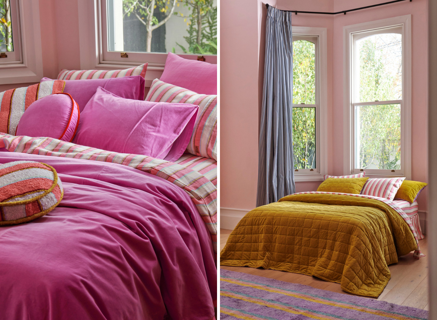 There’s something a little bit magic about velvet in winter. It’s soft, sumptuous, and undeniably chic but most of all, it’s warm. Whether it’s the bedding you jump into at night, the robe you reach for every morning, or the slippers you shuffle around in until bedtime, our velvet pieces are designed to bring you comfort with a side of colour and fun.
