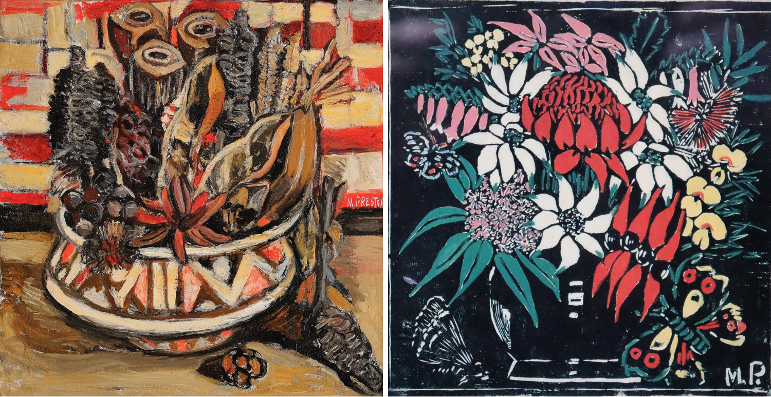 Margaret Preston (1875–1963) was one of Australia’s most celebrated modernist artists, known for her striking prints, bold use of colour, and devotion to native Australian flora. Trained in Sydney and Europe, she became a pioneering figure in Australian art, championing a style that was uniquely local at a time when European influence dominated.