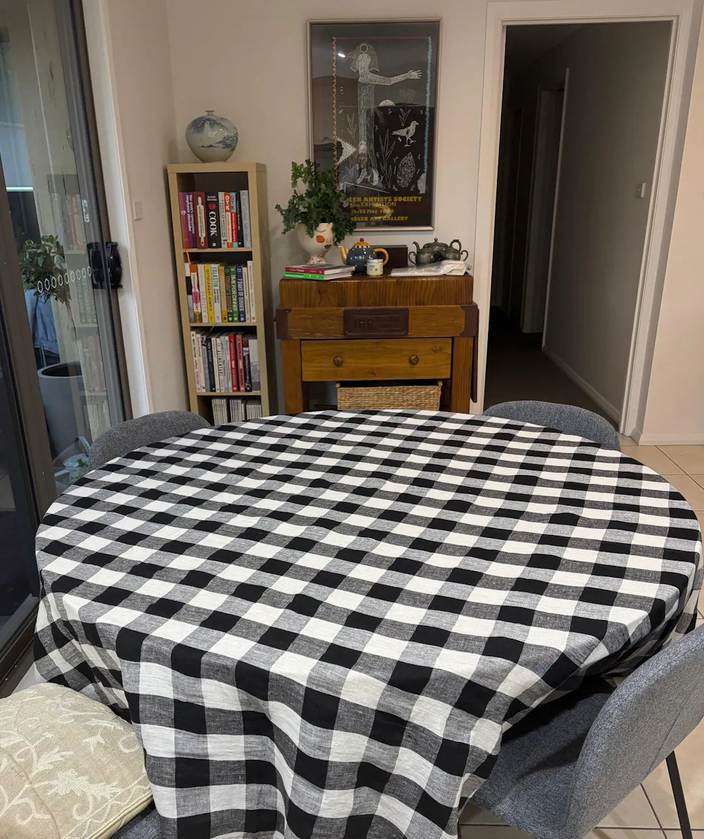 Love the black and white check tablecloth, classic style and a great quality linen.