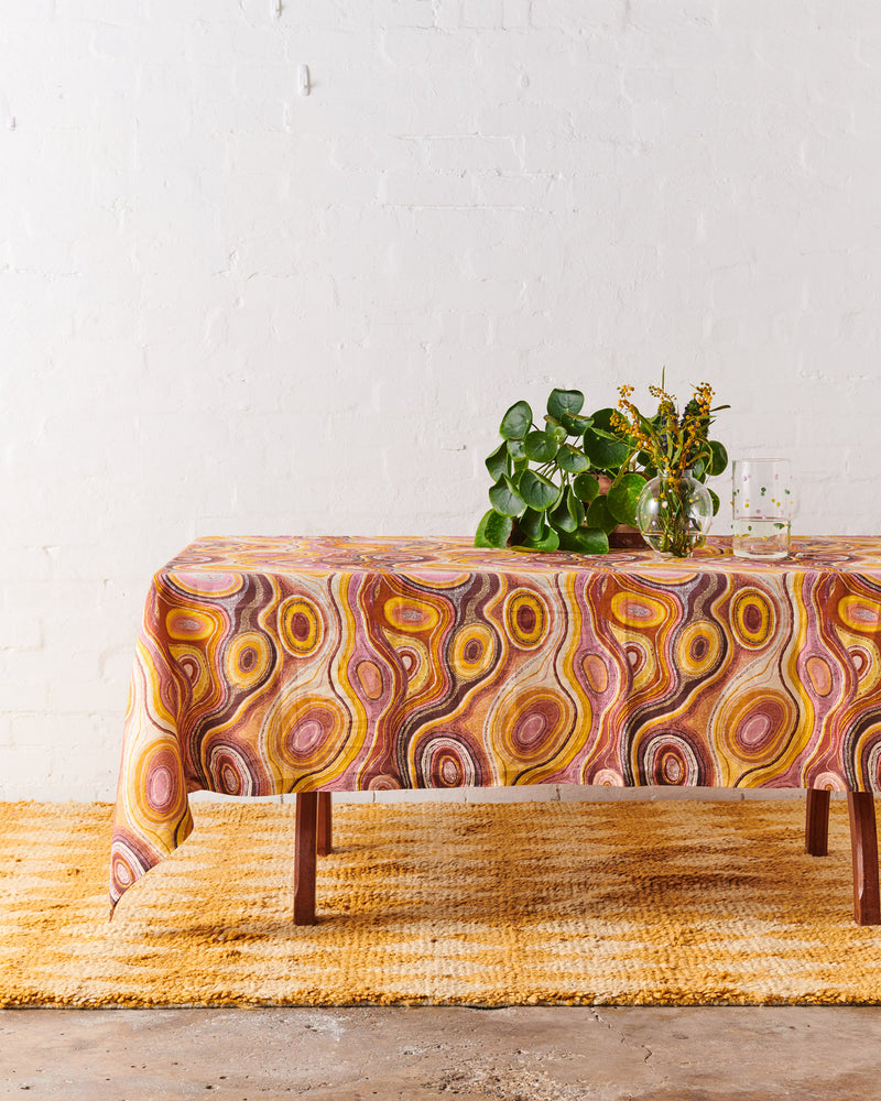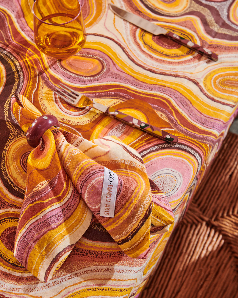 The partnership between Kip&Co x Ernabella Arts is best practice, and one that sets a benchmark for future collaborations. Ernabella Arts and Kip&Co divide all profits from the collaboration equally, so 50% of profits will return to Ernabella Arts.